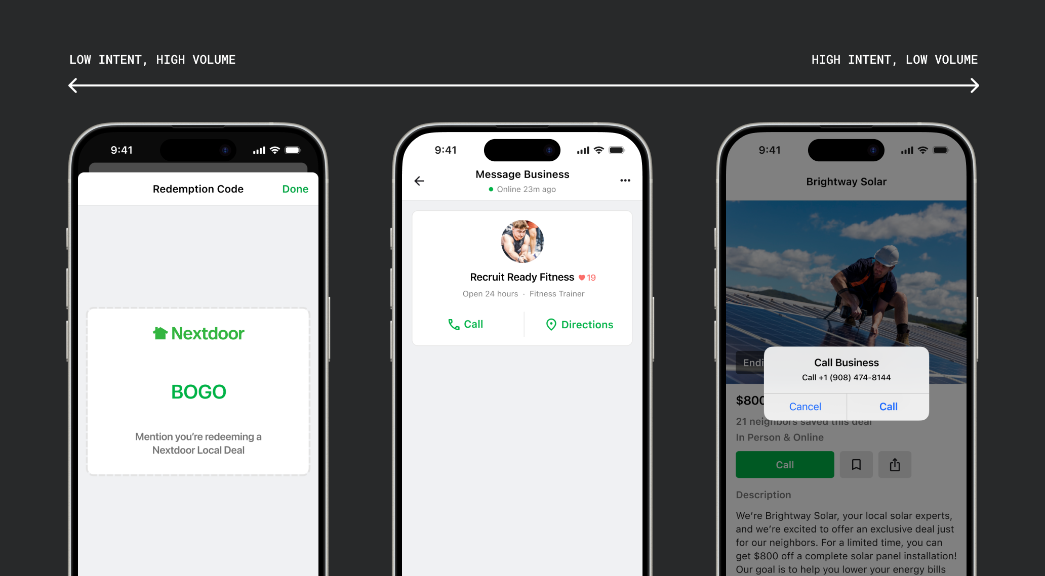 Redemption View — Optimized for in-person retail, a large redemption code and a call to action to mention ‘Nextdoor’ is a reaction to businesses indexing on ‘word of mouth’ as a metric of ad effectiveness